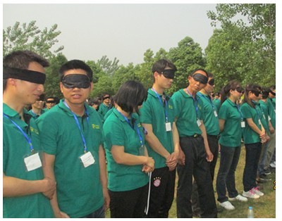 盲人摸號項目就是在完全丟棄視覺和聽覺的封閉狀況下完成的一個挑戰(zhàn)。拓展老師要求我們蒙上眼罩,不能發(fā)聲,然后發(fā)給每人一個數(shù)字,再打亂我們的站位,要在最短的時間內根據(jù)數(shù)字的大小順序排列站好。對于正常人來說再簡單不過的事,但是在這種眼、耳無用的狀況下顯得尤其困難。