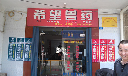 不知不覺一路貼到陳河鎮(zhèn)上,大家加快了進(jìn)度,沒多久,古鎮(zhèn)主街道兩側(cè)的電線桿上就貼滿了回盛的品牌宣傳畫。我們驚喜的發(fā)現(xiàn),鎮(zhèn)上一家希望獸藥店,在店門口醒目的位置還打出了“回盛股份新華星動(dòng)保連鎖獸藥應(yīng)城銷量第一”的標(biāo)語。老板談起銷售業(yè)績一臉歡喜,看得出來回盛旗下的產(chǎn)品在鎮(zhèn)上比較暢銷,市場占有率很高。