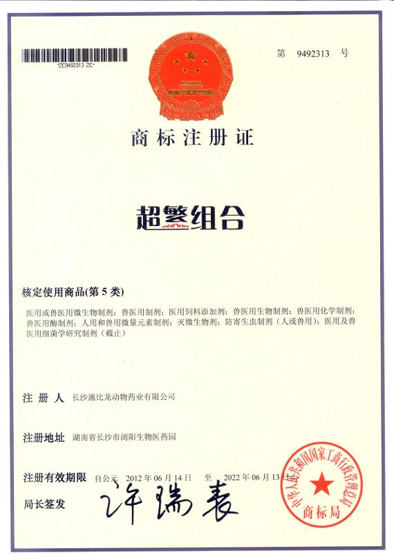 超繁組合商標(biāo)注冊證